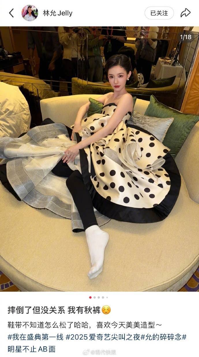 这场意外让#林允红毯摔倒#火速冲上热搜,但现场视频却意外暴露了明星光鲜背后的狼狈:她在采访区对着话筒苦笑"刚刚摔了一跤有点紧张,怕说错话",耳尖泛红的样子和平时精修图里的冷艳判若两人。更有趣的是,当晚她用小号晒出松脱的鞋带照片,配文"秋裤厚的,一点也不疼",这种带点自嘲的坦诚反而圈粉无数,有网友调侃"原来女明星也穿秋裤"。